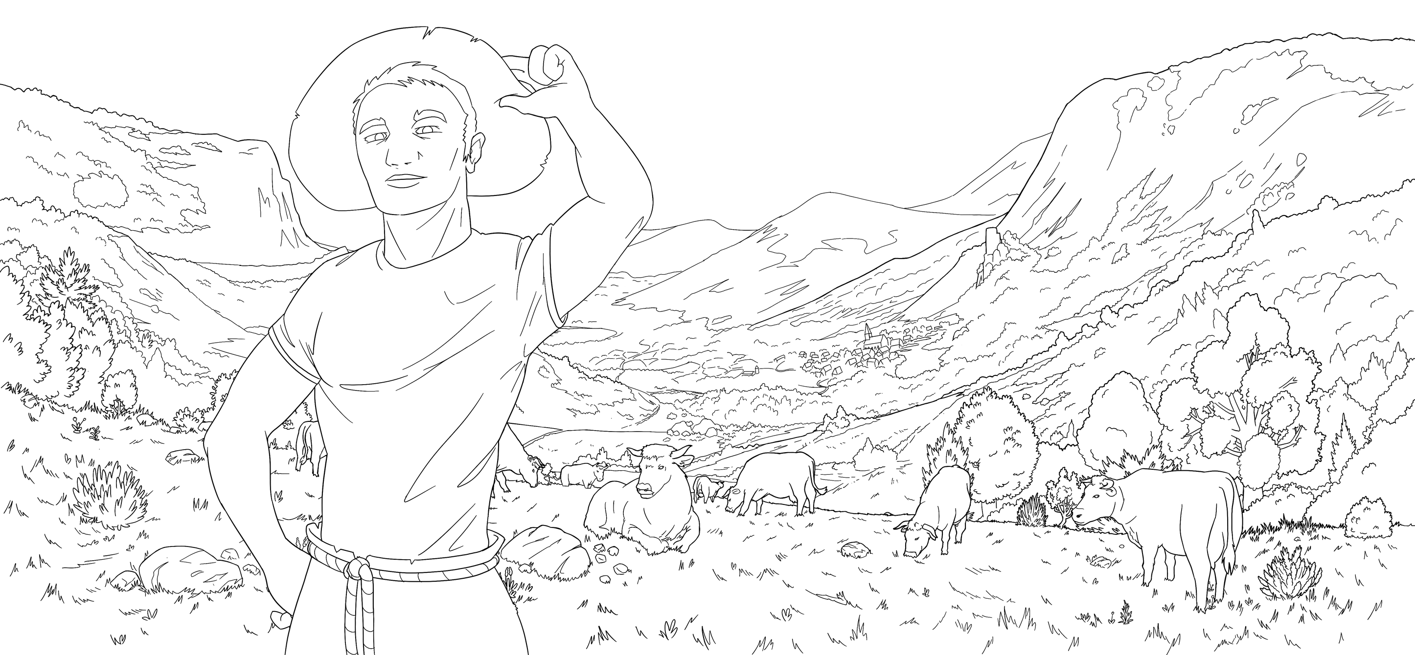 Création d’une série d’illustrations destinés à mettre dans l’ambiance et à poser le narration. Le personnage de la grand-mère est le fil rouge du jeu, elle accompagne le joueur dans sa quête.